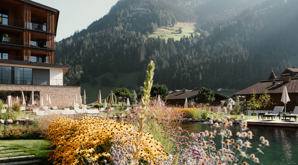 Im Rhythmus des Lebens wachsen wir weiter. Zum Sommer 2023 eröffneten wir den 800 m² großen Naturschwimmteich unseres luxuriösen Wellnesshotels im Salzburger Land. Zeitgleich wurden die Lobby, die Bar The Spirit und der Buffetbereich umgestaltet – alles geräumiger, heller, more cosy und relaxed.