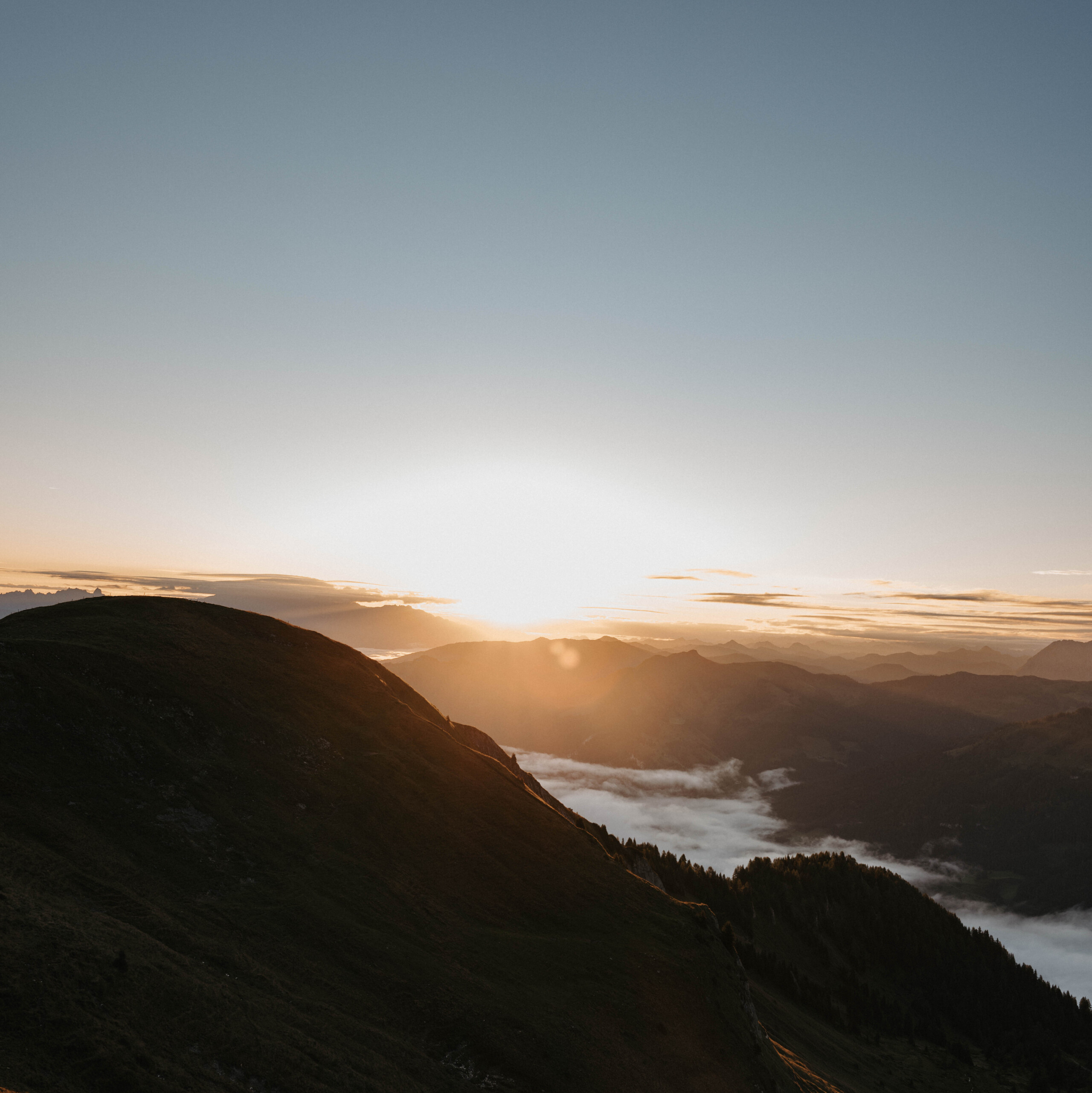 Mit jedem Höhenmeter färbt sich der Himmel heller – zunächst in sanftes Blau, dann in warme Gold- und Orangetöne. Am Gipfel angekommen, schenkt uns die Natur einen Sonnenaufgang, der Herzklopfen verursacht: Die ersten Strahlen tauchen die umliegenden Gipfel in ein magisches Licht, der Blick reicht über das Großarltal und die umliegende Bergwelt – ein Moment der Stille, Ehrfurcht und puren Freude.