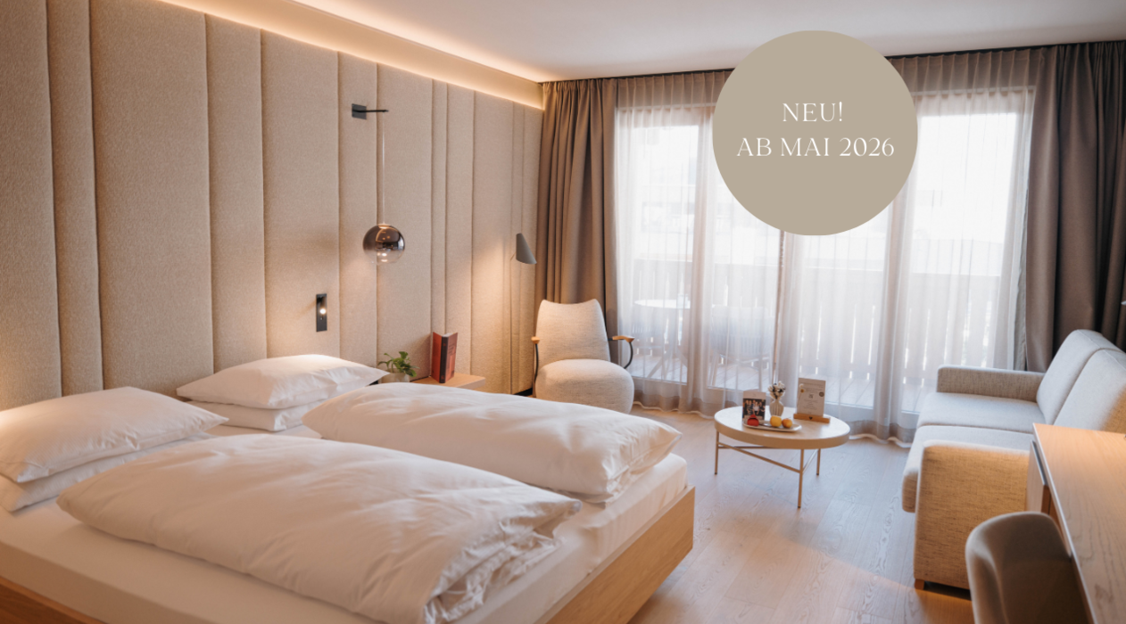 Unsere neuen Doppelzimmer Bergblick schenken ab 13. Mai Wärme, Ruhe und ein Gefühl von Geborgenheit – begleitet von einem wunderschönen Bergblick, der jeden Aufenthalt besonders macht. Das harmonische Farb- und Materialkonzept, liebevoll ausgewählt und neu dekoriert von Gastgeberin Tina Neudegger, sorgt für eine besonders wohnliche Atmosphäre – mit viel Gespür für Details und echtem Wohlfühlambiente.
