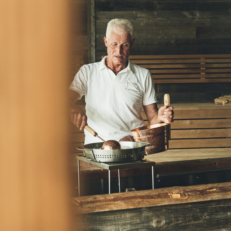 At Hotel Nesslerhof, Sauna infusions are celebrated as a holistic ritual. Traditional banya elements meet alpine nature and loving storytelling. Our sauna masters work with regional hydrolates, fragrant forest and meadow aromas, and hand-picked herbs. Much of this is collected by hand. The infusions activate the metabolism, support the respiratory tract and joints, and range from deeply relaxing meditative moments with singing bowls to energizing experiences with invigorating citrus and herbal scents. Scrubs made from milk, herbs, and natural oils pamper the skin. Short stories from the Grossarl Valley open a small window onto the local culture. Selected show infusions add a touch of entertainment. In this way, tranquility and strength, nature and region, knowledge and sensuality combine to create a harmonious wellness experience in the Salzburg region. Authentic, mindful, and with a lot of heart for our homeland.
