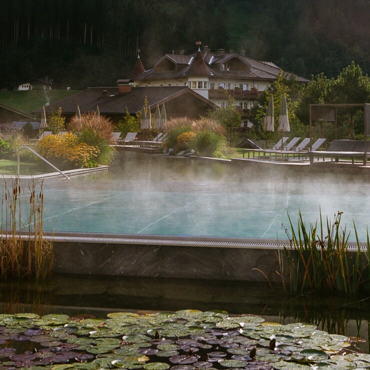 - Conscious breathing in the 1,800 m² premium spa. NEW! Onsen bath, Five saunas, a sole pool, a 25 m outdoor pool, an 800 m² natural swimming pond, eight relaxation rooms and over 100 treatments – your escape at the highest level in Salzburger Land.